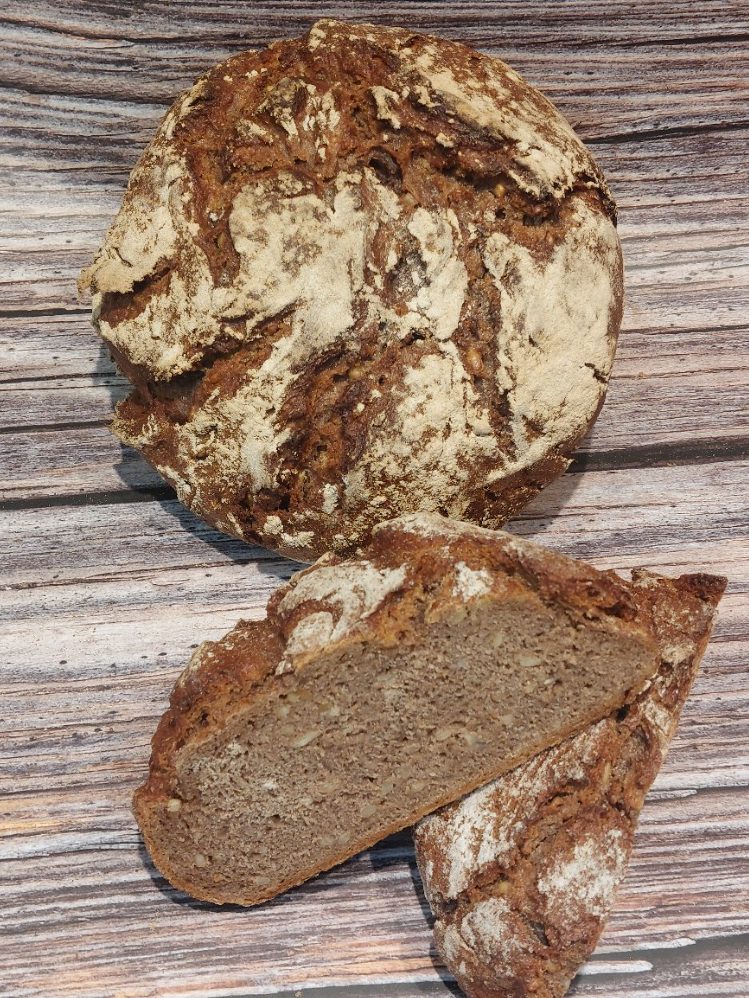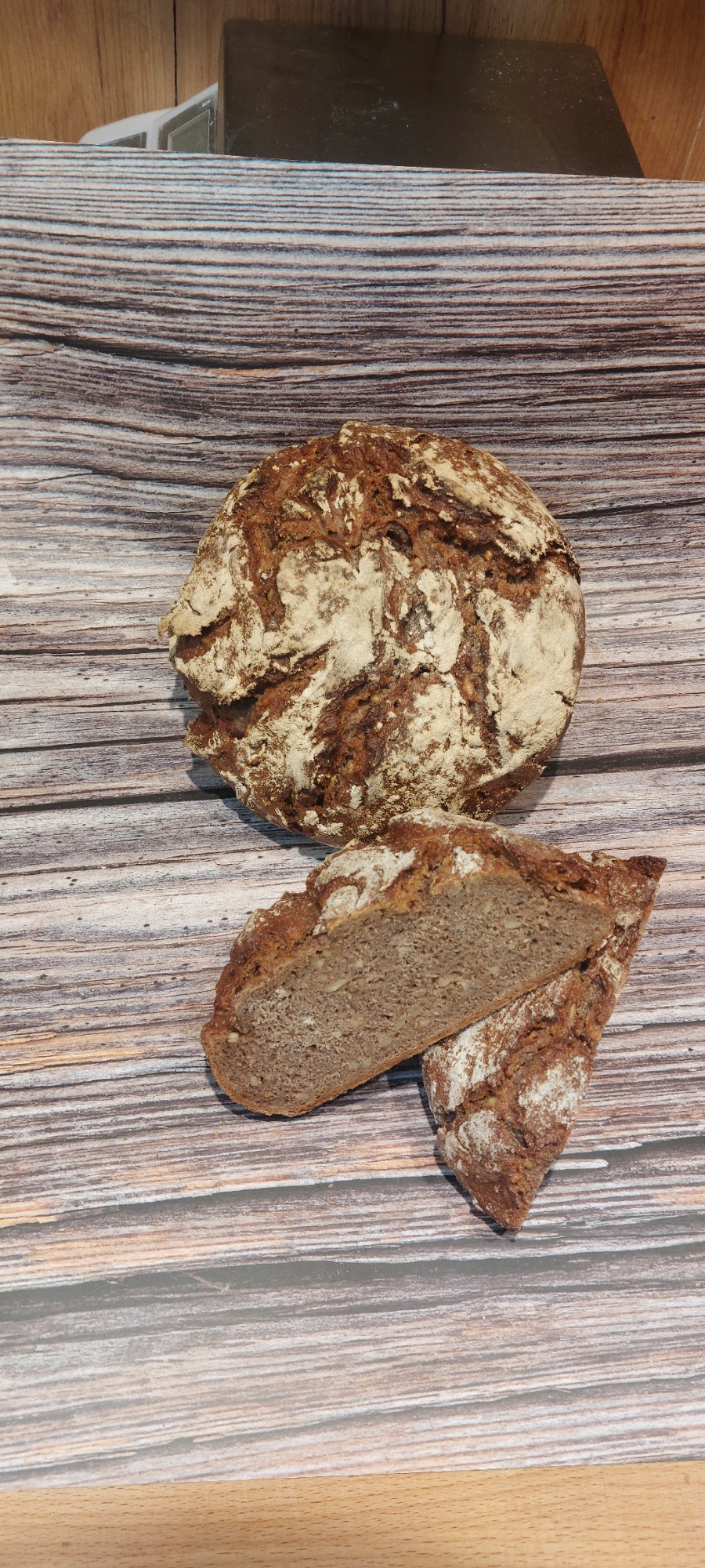 Mein 100 % Roggenbrot wird ausschließlich mit hauseigenem Sauerteig und ohne Hefe gebacken. Das Ergebnis: ein kräftiges, aromatisches Brot mit saftiger Krume und rustikaler Kruste – so, wie ein echtes Roggenbrot sein sollte.