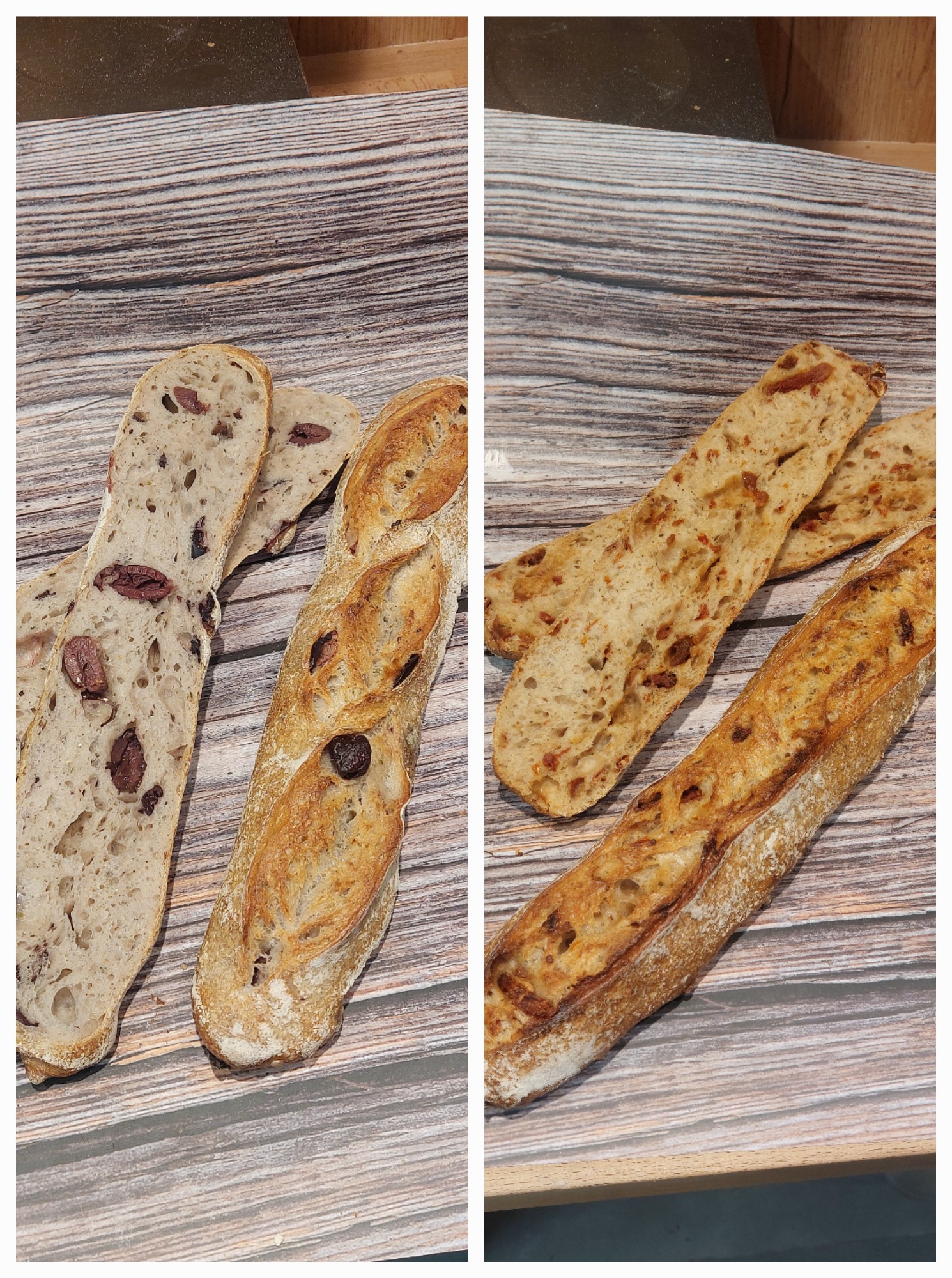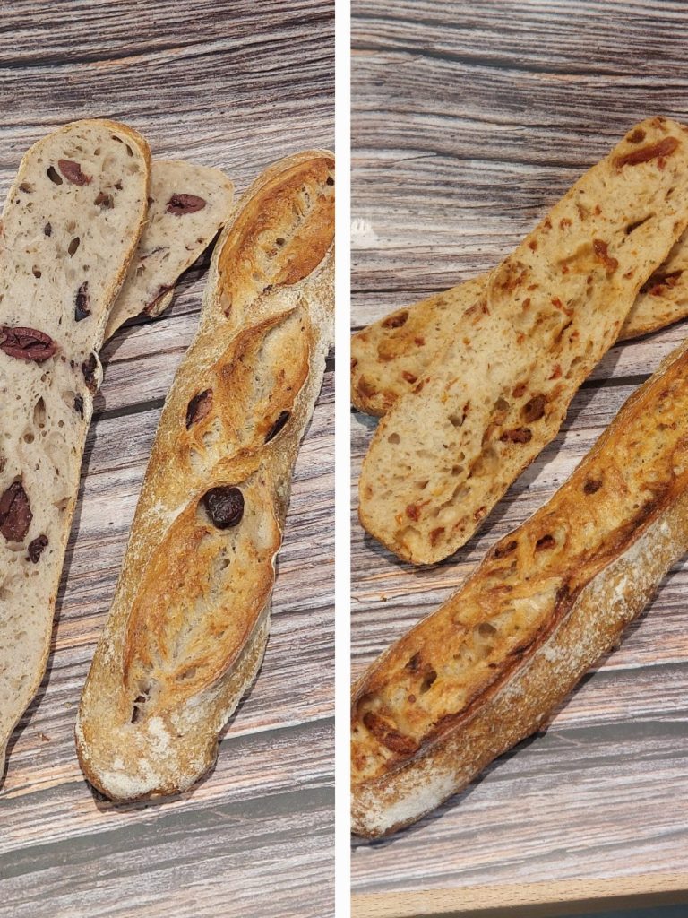 Sauerteigbaguette mit Charakter – verfeinert mit getrockneten Tomaten oder Kalamata-Oliven
